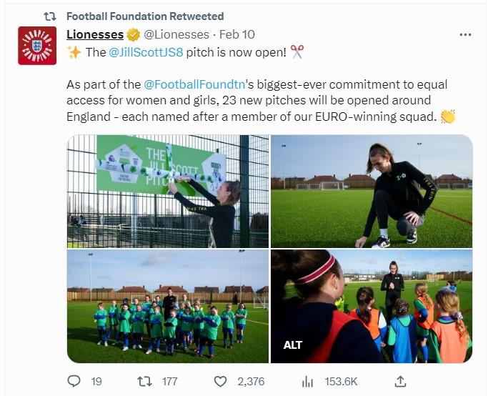 • Collaborate with all Lionesses at site openings and on the ‘Foundations’ series – content showcasing the Lioness' grassroots clubs. This will bring to life the Football Foundation facilities and the benefits they bring to the local community
