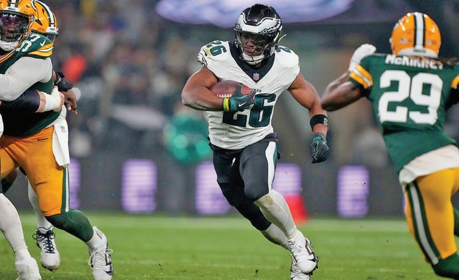 The Eagles consumed 7 minutes, 25 seconds o the fourth-quarter clock in their season-opening game in Brazil, with Hurts leading the way. He escaped pressure twice and gained eight yards on each scramble.
