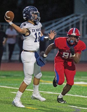 Kyle Shanahan’s o ensive genius and Jordan Mason’s athletic ability look like they could stave o the rest of the NFC’s contenders and give the Niners someone who they could turn to in spurts to make sure McCa rey stays healthy after his return. ••