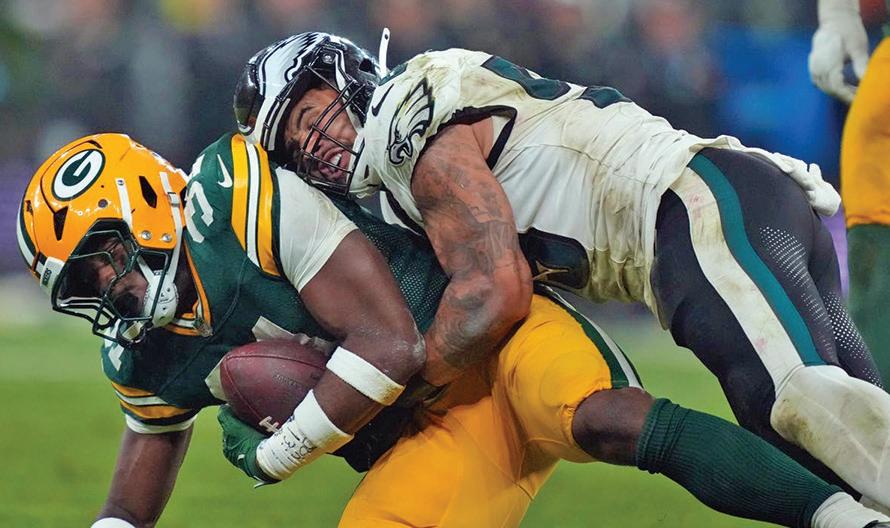 Thanks largely to three turnovers by Jalen Hurts and the Eagles o ense, the defense faced four red zone challenges from a Packers o ense that finished third in total yards and seventh in scoring last