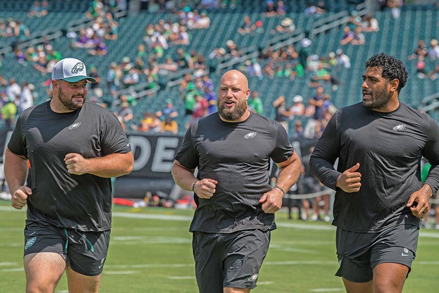 From left: Landon Dickerson, Lane Johnson and Jordan