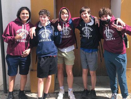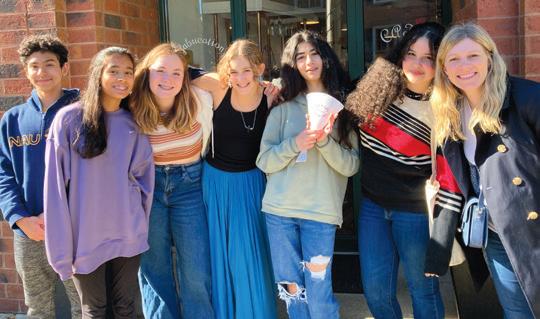 Top photo, Lower School students enjoy their lunch on the lawn. Above, this year’s French class visited Crêpes Choupette to practice their language skills.