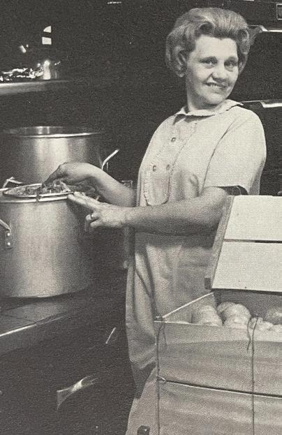 At left, the Foote lunchroom in 1972. Above, Head Cook Ceil Vece and Assistant Cook Mary Vece (right) were at Foote between 1965 and 1973. The 1973 yearbook dedication described Ceil as “generous to a fault, unbelievably thoughtful, completely unselfish and devoted to everyone at Foote.”