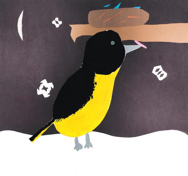FIRST-GRADE STUDENTS are encouraged to express their ideas creatively, using a variety of media. Sunflower illustration by Grace Zhong.
