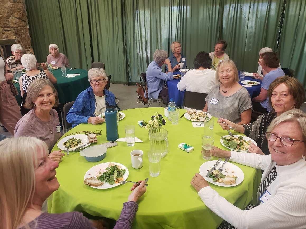 Ladies 50 and better gather for a Slightly Senior Sisterhood lunch in the church social hall.