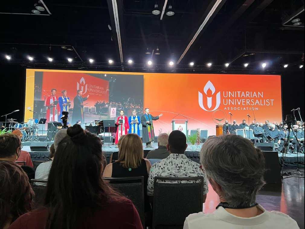 Rev. Gretchen Haley was honored with delivering the Sunday morning sermon at General Assembly 2022, the annual gathering of Unitarian Universalists. She preached to thousands of Unitarian Universalists worldwide alongside Rev. Sean Neil-Barron. In her sermon, she called on us to remember the power of people, of local churches, and of our promises to each other. She invited us to remember that it is because of us - the people that make up the church, that form the ministries and the small groups and show up on Sundays - that Unitarian Universalism exists. And most of all, to remember that we are big enough to not only survive but to impact the world.