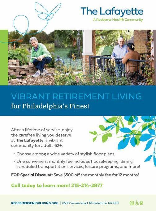 We work hard for many active and retired Philadelphia Police o cers, and it is an honor and privilege to work on their behalf We thank you for the opportunity to be of ser vice.