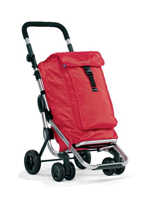 Lightweight shopping trolley with aluminium frame, 3-height adjustable handle with anti-slip grip. Features a large water-proof bag which can be fully opened, 2 pockets and a detachable thermal pouch. When folded it’s a super compact trolley. designed