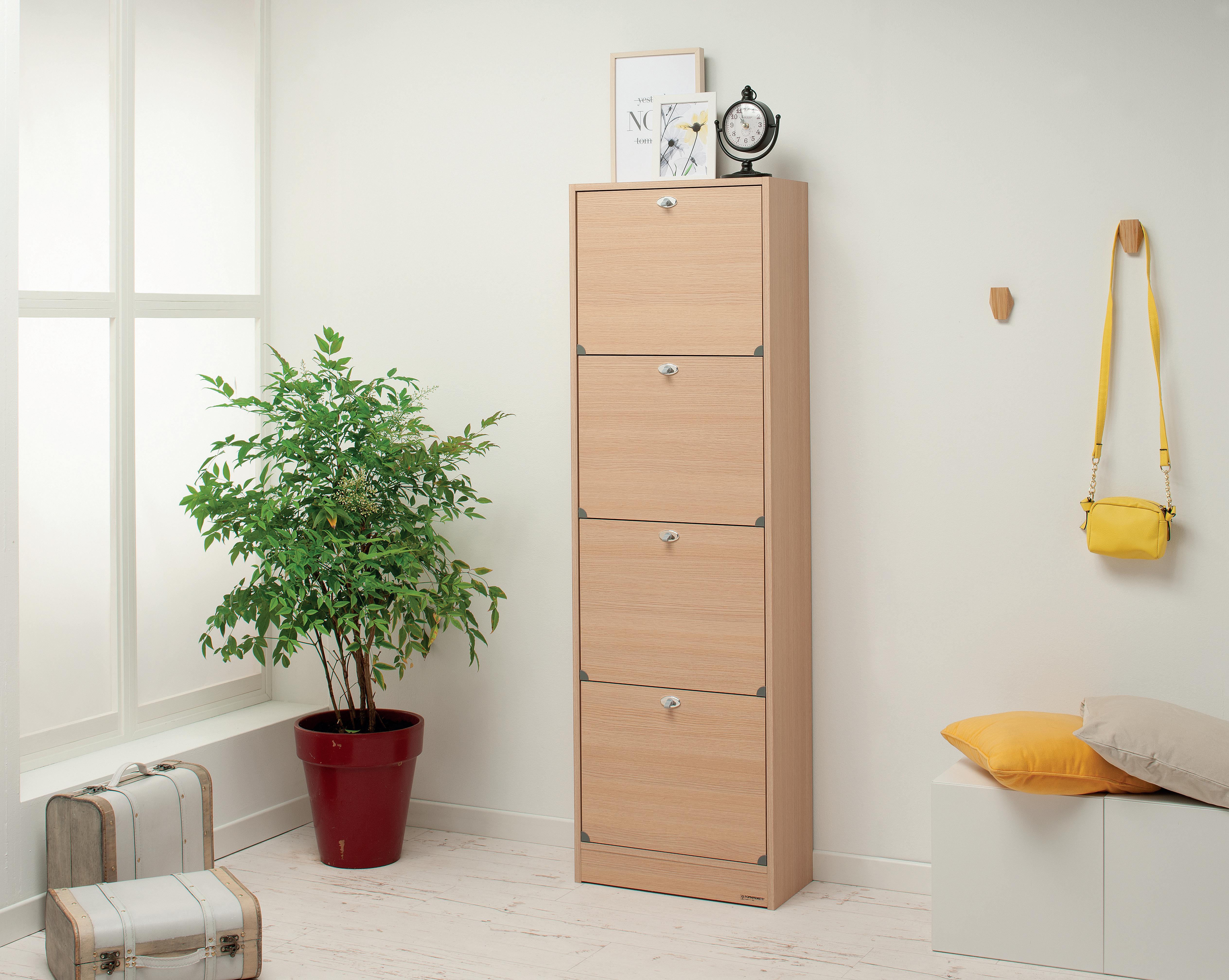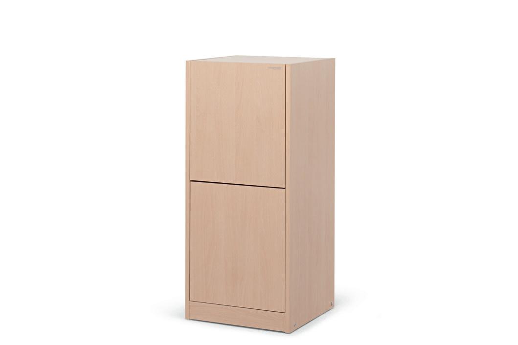 Cabinet with fold away ironing board in poplar. Body in laminated chipboard. Equipped with shelves for laundry and colori: naturale, noce, bianco, canaletto. colours: natural, walnut, white, canaletto.