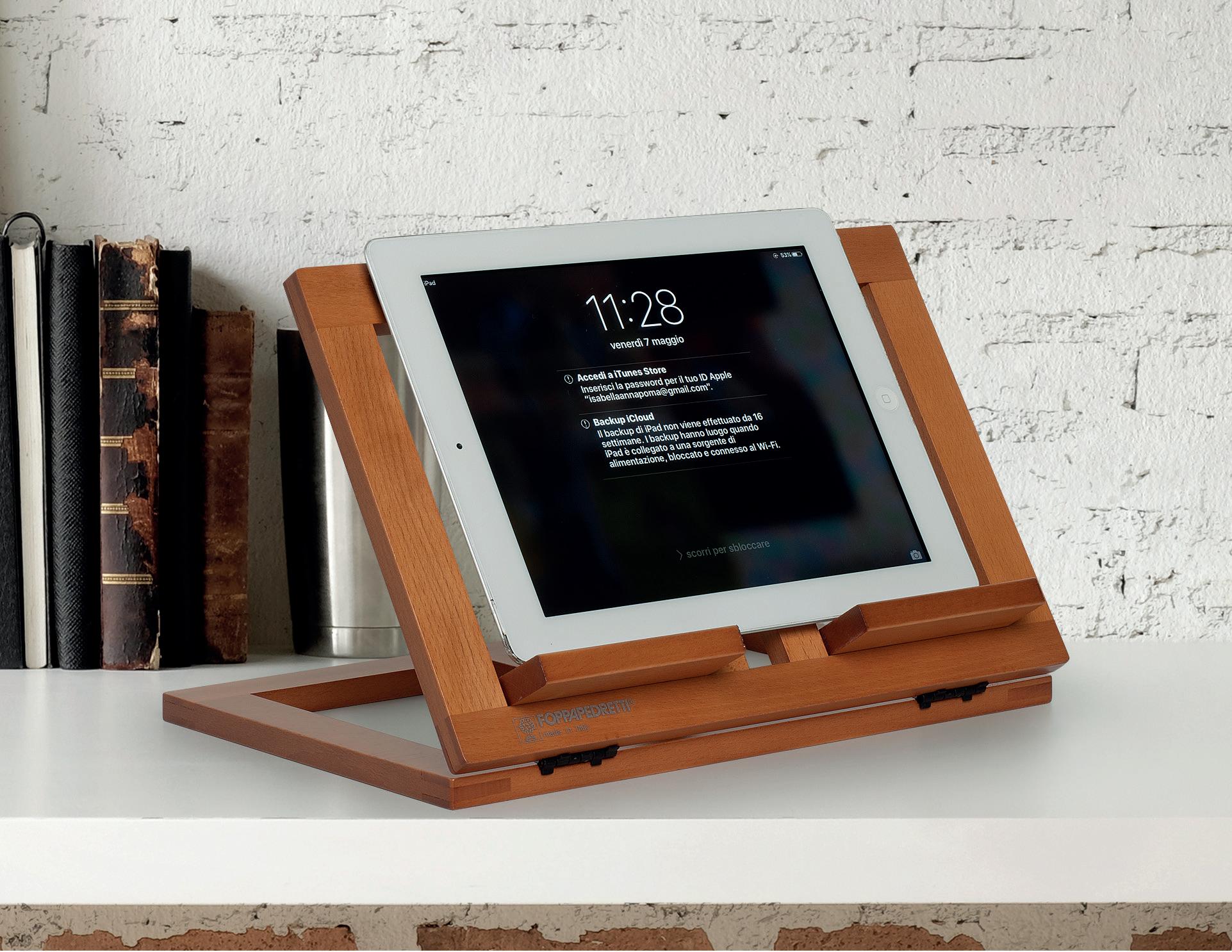 Bookrest in solid beech wood adjustable in various positions. Compact as a book