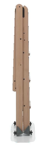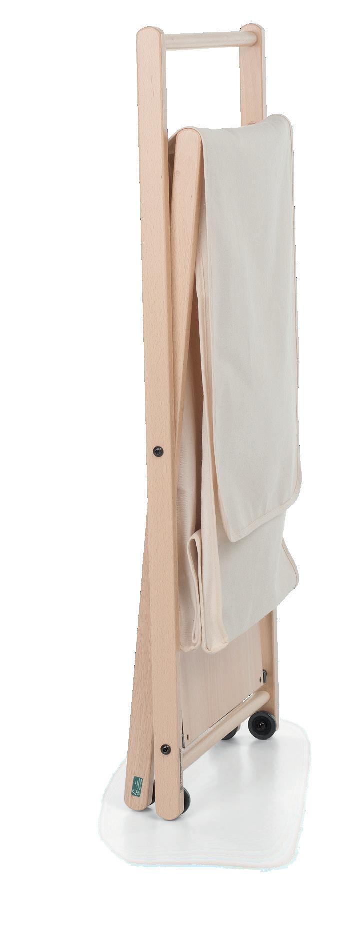 Stendibiancheria pieghevole con struttura in legno massiccio, piano centrale posizionabile al centro o in alto per stendere le lenzuola, ali laterali indipendenti, inclinabili e apribili anche solo in parte. La base è dotata di 4 ruote (2 con freno). Offre 33 metri di filo utile per stendere il bucato, si chiude completamente occupando solo 18 centimetri.
