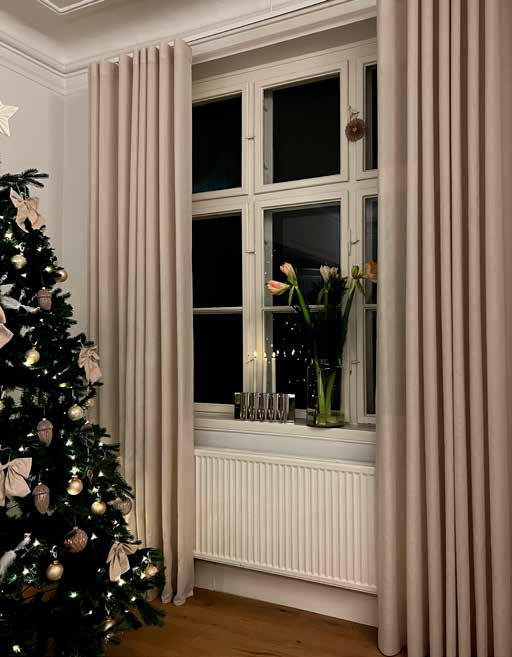 Ønsker du ekstra julestemning, kan du vælge varme julefarver som dyb rød, jordtoner eller mørkegrøn - perfekt til at tilføje festlig varme til rummet. For at kombinere hygge og naturligt lys kan de tunge gardiner suppleres med lette, lyse tekstiler, der kan trækkes for i løbet af dagen. På den måde får du både dagslys, luft og den varme, de tunge gardiner skaber, når mørket falder på.