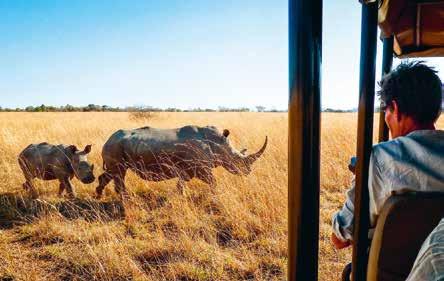 Maden er fremragende, fra terrassen kan du få en drink, mens du hører elefanternes trompeteren helt tæt på. Fra swimmingpoolen er der udsigt over et vandhul, hvor dyrene kommer for at stille deres tørst. De oplevelsesmættede dage med safari i nationalparkerne kan ofte kombineres med afslapning og genopladning af batterierne ved Det Indiske Oceans langstrakte sandstrande eller med vinsmagning blandt Sydafrikas bølgende vinmarker.