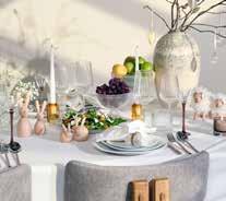 Farver giver ekstra liv i hjemmet, og et flot dækket påskebord sætter en god stemning fra start. Brug service og glas i afrundede former og transparente farver.