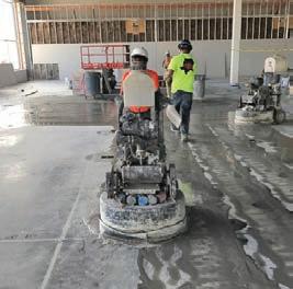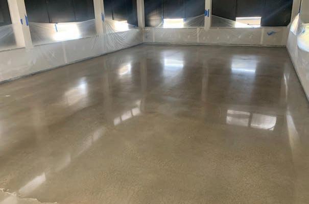 Initially, you need to consider if the concrete floor is going to be newly placed concrete or if it’s an existing slab. If it’s going to be a newly placed slab and you are given the opportunity to provide input for the mix design and finish, it would be beneficial to suggest the following. These criteria will generally give you a good start towards providing the customer with a greatlooking densified and polished floor. • Avoid air-entrained concrete if possible. • Minimize fly ash and other fillers (ideally less than 20%). • Concrete with PSI strength between 3,500 and 5,000 is optimal. • When finishing, the flatter the better and preferably not burned in.