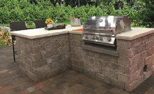 Fireplaces and grill stations combine the weathered beauty of Keystone Hardscapes’ popular Stonegate retaining wall system in pre-sorted pallets that make installation easy, fast and efficient. The projects require no cutting and can be constructed by two novice installers using downloaded illustrated step-by-step instructions. • Available in regionally relevant colors, the one- and two-sided hearth fi replaces come in three-pallet designs as does the L-shaped grill station. The more traditional straight grill station comes in a two-pallet design that can be installed in about an hour. • Grills, refrigerators, fi replace inserts, propane tanks other accessories are sold separately.