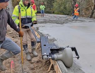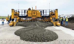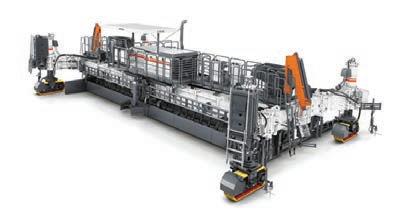 The M-6040 from Miller Formless has a dualtelescoping main frame, hydraulic variablewidth paving mold, advanced machine control system, and other state-of-the-art features. It was designed to consistently produce smooth, high-quality concrete surfaces and maximize cost-effectiveness and flexibility on projects of all scope and scale. Capable of extending from 8 ft. 3 in. to 16 ft. 5 in. wide without frame or mold inserts but for larger jobs, bolt-on mold inserts can be used to expand the system to 20 ft. wide. • Can pave up to 15 3/4 in. deep with an operating speed of 22 fpm • 176-hp Caterpillar C4.4 Stage V turbocharged, air-cooled diesel engine • Four hydraulically actuated square-to-round leg columns • Electronic control panel includes two steer sensors and steer wands, four grade proportional sensors with grade wands and proportional slope control