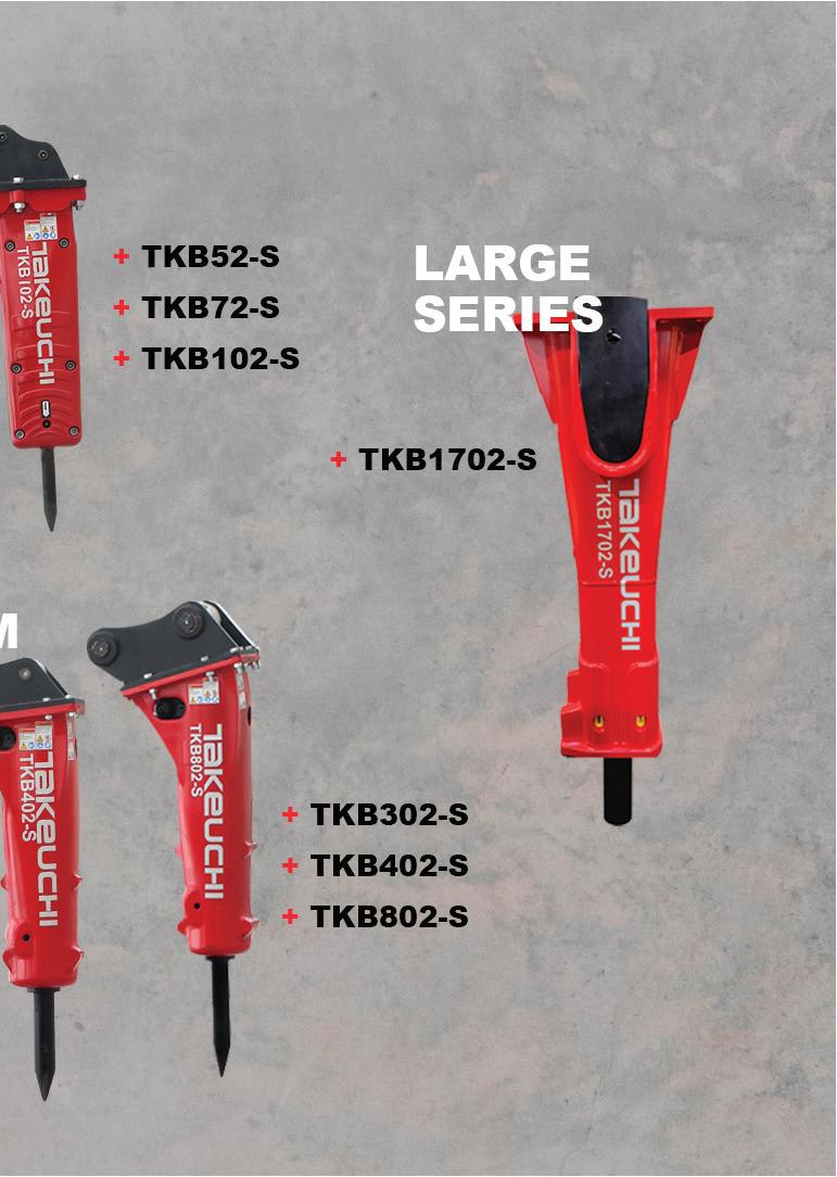 Takeuchi Hydraulic Hammers Takeuchi has added seven sound-suppressed hydraulic hammer models to the Takeuchi Attachment Program, helping compact track loader and compact excavator owners accomplish their goals on construction sites. Takeuchi’s new hydraulic hammer line includes seven models with reliable power-to-weight ratios for a variety of applications. Providing noise and vibration insulation, the sound-suppressed design of every Takeuchi hammer also protects it from dust and debris. Constant blow energy, or “CBE” allows for a wide range of oil flow settings and protects the hammer against high back pressure. An integrated, membrane-type hydraulic accumulator eliminates nitrogen leakage and the need to recharge for lower operating costs and consistent impact energy.