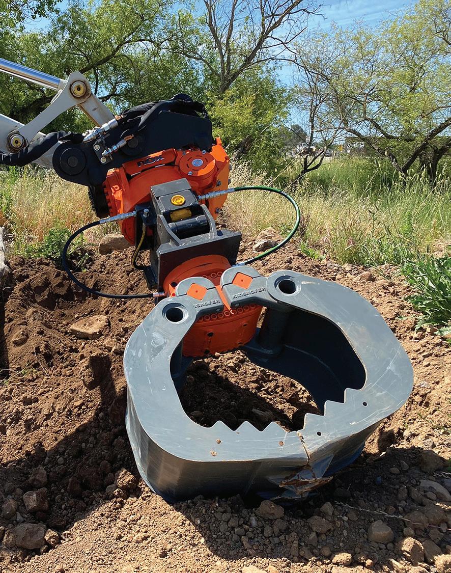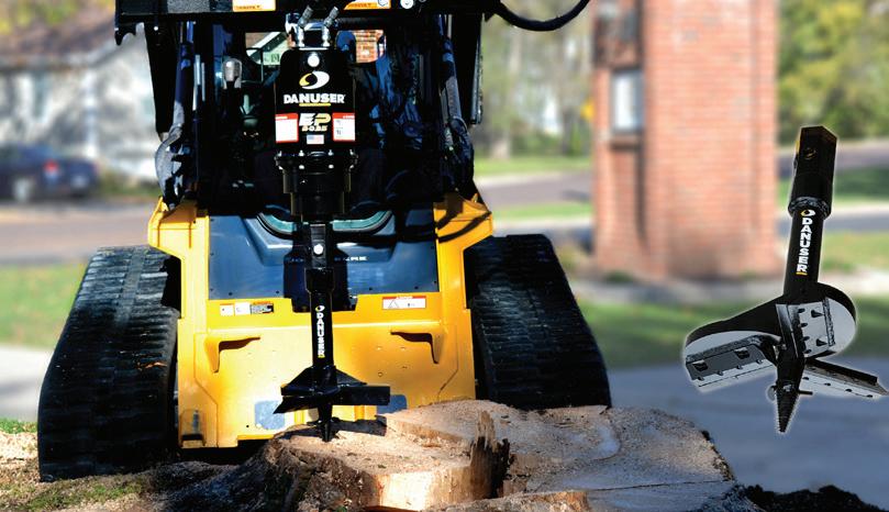 Danuser’s EP Auger System for backhoes, mini skid steers and excavators is compatible with Danuser’s Stump Auger, a standard 2-in. hex auger attachment that planes away stumps without requiring large, specialized equipment. A threaded, hardened steel pilot digs into the stump and large cutting blades then shave the stump away. The large cutting blades are reversible for more cutting life.