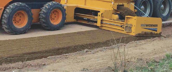 Werk-Brau NOX Tiltrotators Werk-Brau's Nox tiltrotators for excavators. The attachment provides 360° of endless rotation with a tilt angle of 2 x 50°, allowing versatility with a wide range of attachments. These tools transform excavators into multi-functional carriers that work in deep trenches, under or between existing pipes and tubes and in other confined space applications. Designed for use with fork tines, grabs, grippers, buckets and more, this technology allows operators to complete projects without repositioning the carrier. A range of Werk-Brau NOX tiltrotators are available for excavators in various classes and categories, from 3-25 tons. With integrated hydraulics and no components protruding from the compact design, the risk of damaging hydraulic cylinders, hoses or other components is reduced on the jobsite. The product has minimal wear parts and only two fittings that require grease. Road Widener’s FH-R Material Placement Attachment Road Widener's FH-R material placement attachment has a remote-controlled design that allows the operator of the host machine to control the attachment via remote control, improving safety by eliminating the danger of additional workers standing along the jobsite. The FH-R is for material placement, dispensing topsoil, gravel, asphalt, limestone and more, with an attachment compatible with common machines that contractors already own. The remotecontrolled attachment easily connects to most skid steers, compact track loaders, road graders and wheel loaders, operating off the host machine’s engine and hydraulics.
