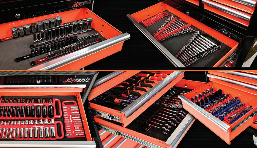 The Dynamic tool brand has introduced a new line of tool organizers. The line includes several solutions for storing sockets, wrenches, screwdrivers and other small tools. The magnetic socket organizer stores sockets in an upright position. Complete with magnetic base, the organizers are available in red for SAE and blue for metric sockets, and they have sizes printed on them for identification and selection. The next product is a socket organizer tray, which features a slim profile design for placement within shallow toolbox drawers. It uses magnets to hold sockets in place and comes with stickers for size labeling sockets. The third product is an aluminum socket organizer rail, which includes clips with spring-loaded bearings to hold up to 20 sockets in place. All three socket organizers are compatible with most regular and deep chrome sockets, as well as impact sockets. Options are available to accommodate 1/4-in., 3/8-in. and 1/2-in. drives in both SAE and metric sizes.