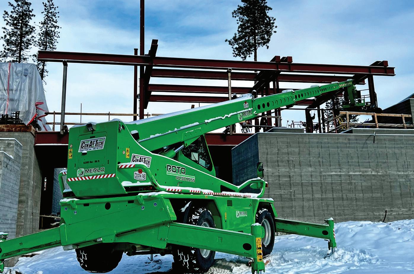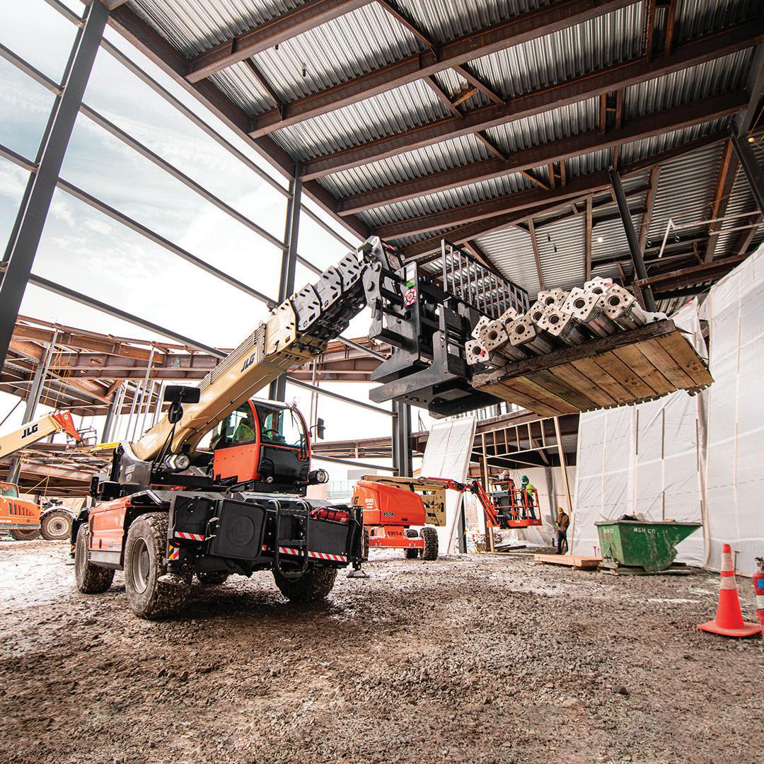 “Anything I can do to make materials management more efficient is a big win for me,” Morton said. “Getting into a rotating telehandler has the benefit of being three machines in one. Not only does it move materials with forks like a regular telehandler, but it works equally as a crane and also as a man basket.”