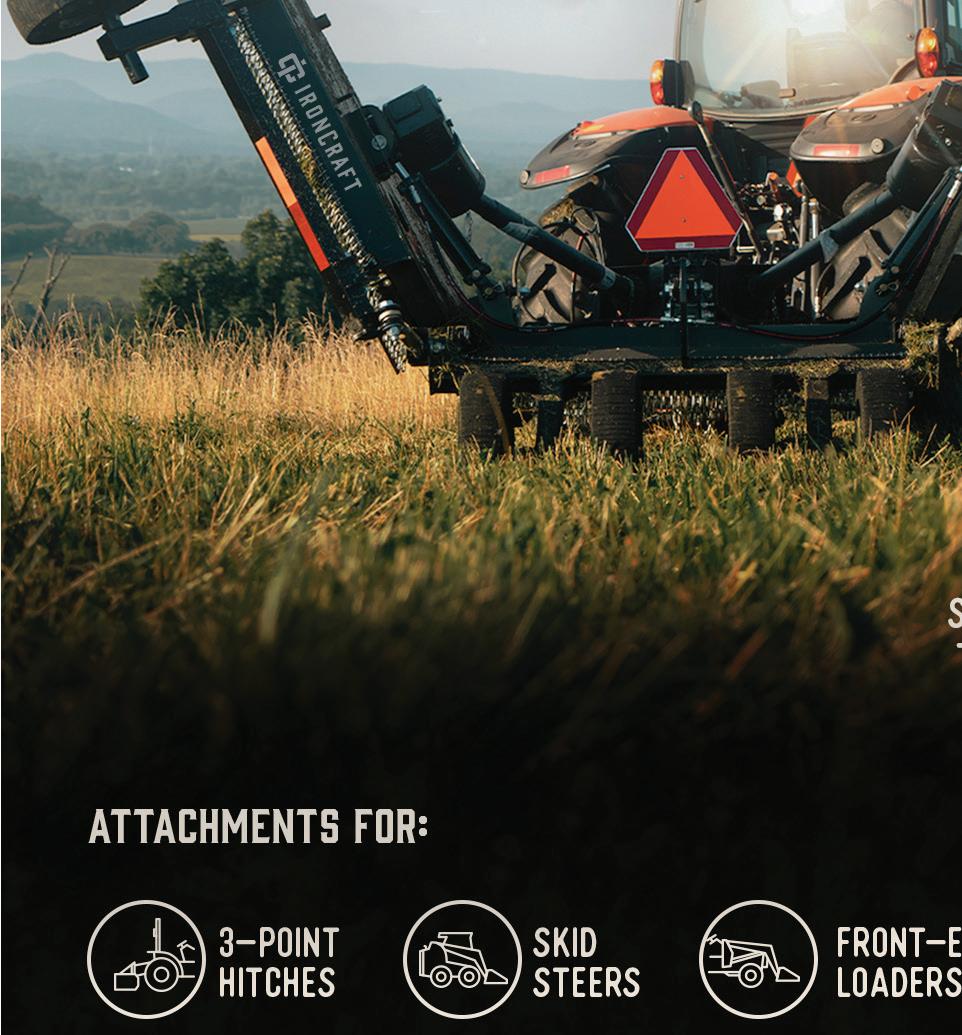 Werk-Brau Skeleton Rock Bucket Werk-Brau Skeleton Buckets are specifically designed to separate large rock and other debris from smaller loose materials. All Werk-Brau buckets are made in the U.S. and are available through equipment dealers and distributors worldwide. • Available in various widths and sizes for either loaders or excavators. • Manufactured with high-strength T-1 steel in all critical wear points • Abrasion-resistant wear straps to reinforce the bucket bottom • Tapered side plates reduce wear on the bucket and allow for easier dumping Loftness H Series Battle Ax Mulching Attachment The H Series Battle Ax mulching attachment is designed for high-flow skid steers and compact track loaders with 33 to 62.9 gpm and 50 to 150 hydraulic hp. • V-Drive variable-displacement piston motor automatically shifts rotor rpm from highest speed to a lower range for increased torque • Unique rotor with built-in depth gauges that function similar to raker teeth on chain saws to prevent attachment from engaging too much material at one time • Two-stage cutting chamber design • Can be used with reversible planer knives, hardsurfaced planer knives or double carbide teeth