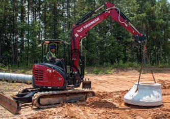 Yanmar's ViO17-1E and ViO25-6B mini excavators are designed for operator comfort, performance and reliability in tight spaces. The ViO17-1E is designed for residential work, landscaping and small general construction projects. The ViO256B can also be used in those applications but brings additional power and size for building maintenance projects, irrigation, plumbing pipeline and more. The ViO171E offers a 4,023-pound operating weight and 14.5-hp engine while the ViO25-6B features a 5,908-pound operating weight and 20.4-hp engine. These vehicles feature dig depths of 7 ft., 7 in. for the ViO17-1E and 10 feet for the ViO25-6B. Yanmar builds the ViO17-1E and ViO25-6B with true zero tail swing technology for workplace performance.