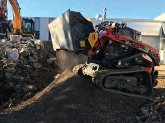 The new KX030-4 replaces the KX71-3S in the 2- to 3-ton segment and rounds out Kubota’s KX Series lineup. The KX030-4 is powered by Kubota’s dependable direct-injection diesel engine engineered to maximize digging and lifting performance while minimizing noise, vibration and fuel consumption. Available in both canopy and cab models, the new KX0304 provides 24.7 hp, a working range that includes a digging depth of 9 ft., 7 in., and a bucket breakout force of 6,924 lbs. The KX030-4 auto-downshift feature allows the operator to travel in 2nd speed and make turns without having to manually downshift, all while traversing a jobsite for better travel and increased productivity. A hydraulic diverter valve is located on the dipper arm and comes standard on the KX030-4, allowing operators to switch between attachments with the turn of a wrench.