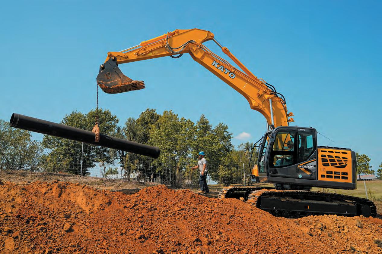 The KATO 823MR is a minimal radius powerhouse,driven by the 172hp ISUZU 4HK1X. The four-pump hydraulic system andnearly 22 feet of digging depth with a digging force of 54,050 lbs. will move heaven and earth on your job site. This minimal radius large excavator is Japanese made and U.S.A. customized/distributed. KATO’s exceptional full-size line of excavators rise to the demands of the biggest earthmoving jobs.All R7 excavator models come standard with cab heat, a/c, pattern change valve, dual auxiliary hydraulics, side and rear view cameras. Learn more at www.KATOCES.com or call today 1-800-538-1447.