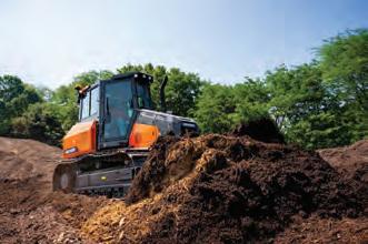 The 10-metric-ton DD100 dozers are now available in North America. This machine features a six-way variable angle pitch blade. Customers can choose from two blade options: a standard 2.9 cu. yd. blade or an optional 3.4 cu. yd. capacity blade. Operators can adjust the blade pitch from 54° to 58°. Also available is a blade shake button for operators to remove materials stuck to the blade. Specifications include: