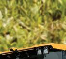 Two independent conveyor halves allow for infinitely variable speed. Both halves can be controlled separately. Conveyor control is independent of augers by ultrasonic sensors. The dashboard has a multifunction display on each console. The 6-cyl., water-cooled diesel engine has a hydraulically driven fan.