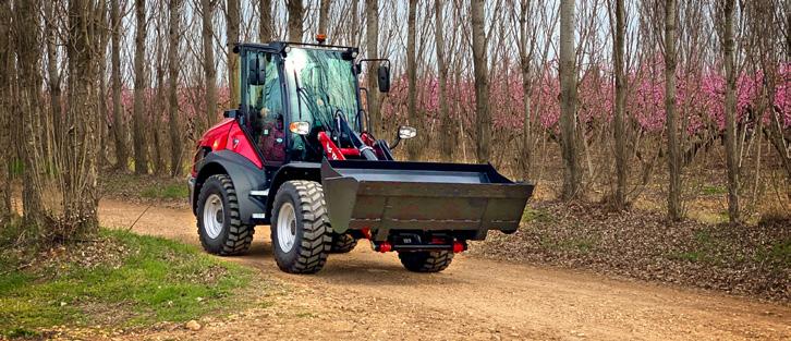 Standard features include a multifunction joystick enabling operators to control all machine functions with their hands only; a vertical lift path that allows the boom to raise the bucket straight up to full height, less spillage and lift height, and two-speed travel enabling movement around the jobsite.