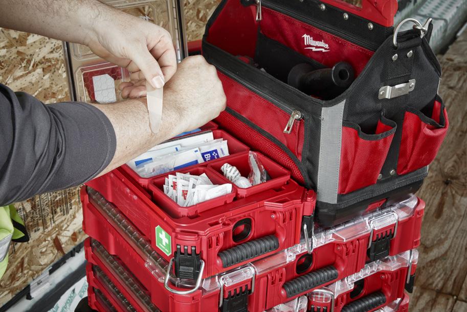 •Impact-resistant body keeps contents safe from drops and bumps on the jobsite •IP65-rated weather seals protect bandages, adhesives, antibiotics and other essential medical supplies from rain and jobsite debris •No-travel bin seals prevent contents from shifting during transport •Transparent lid allows for easy identification of contents •Heavy-duty latches and reinforced hinges www.forconstructionpros.com/21627704