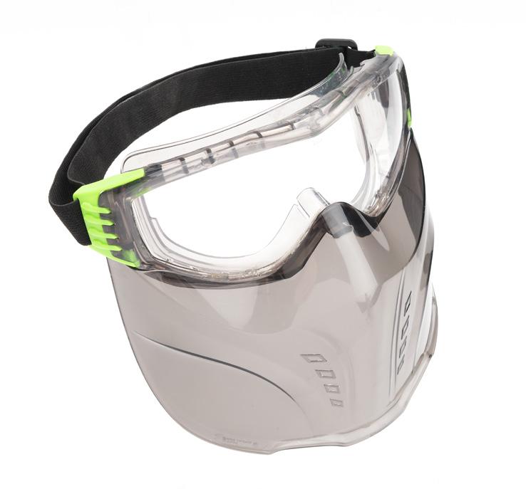 The Vader Combo combines the Vader splash goggle with an integrated face shield, offering 180° peripheral vision and face coverage.