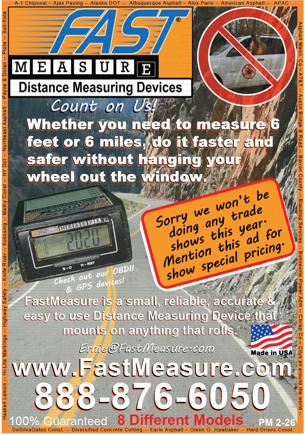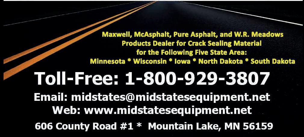 Individual subscriptions are available without charge in the U.S. only to pavement maintenance contractors, producers and government employees involved in paving or pavement maintenance; dealers, and distributors of pavement maintenance equipment or materials; and others with similar business activities. Complete the subscription form at www.forconstructionpros.com or use your company letterhead giving all the information requested. Publisher reserves the right to reject nonqualified subscribers. One year subscriptions for nonqualified individuals: $35.00 U.S.A., $60.00 Canada and Mexico, and $85.00 all other countries (payable in U.S. funds, drawn on U.S. bank). Single copies available (prepaid only) $10.00 each (U.S., Canada & Mexico), $15.00 each (International). Pavement Maintenance & Reconstruction (ISSN 1098-5875), is published eight times per year: January, February, March, April/May, June/July, August/September, October/ November, December by IRONMARKETS, 201 N. Main St. Ste 350, Fort Atkinson, WI 53538. Periodicals postage paid at Fort Atkinson, WI and additional entry offices.