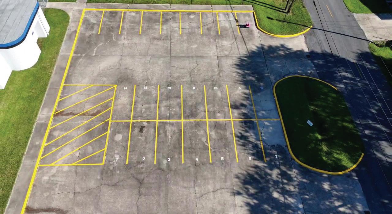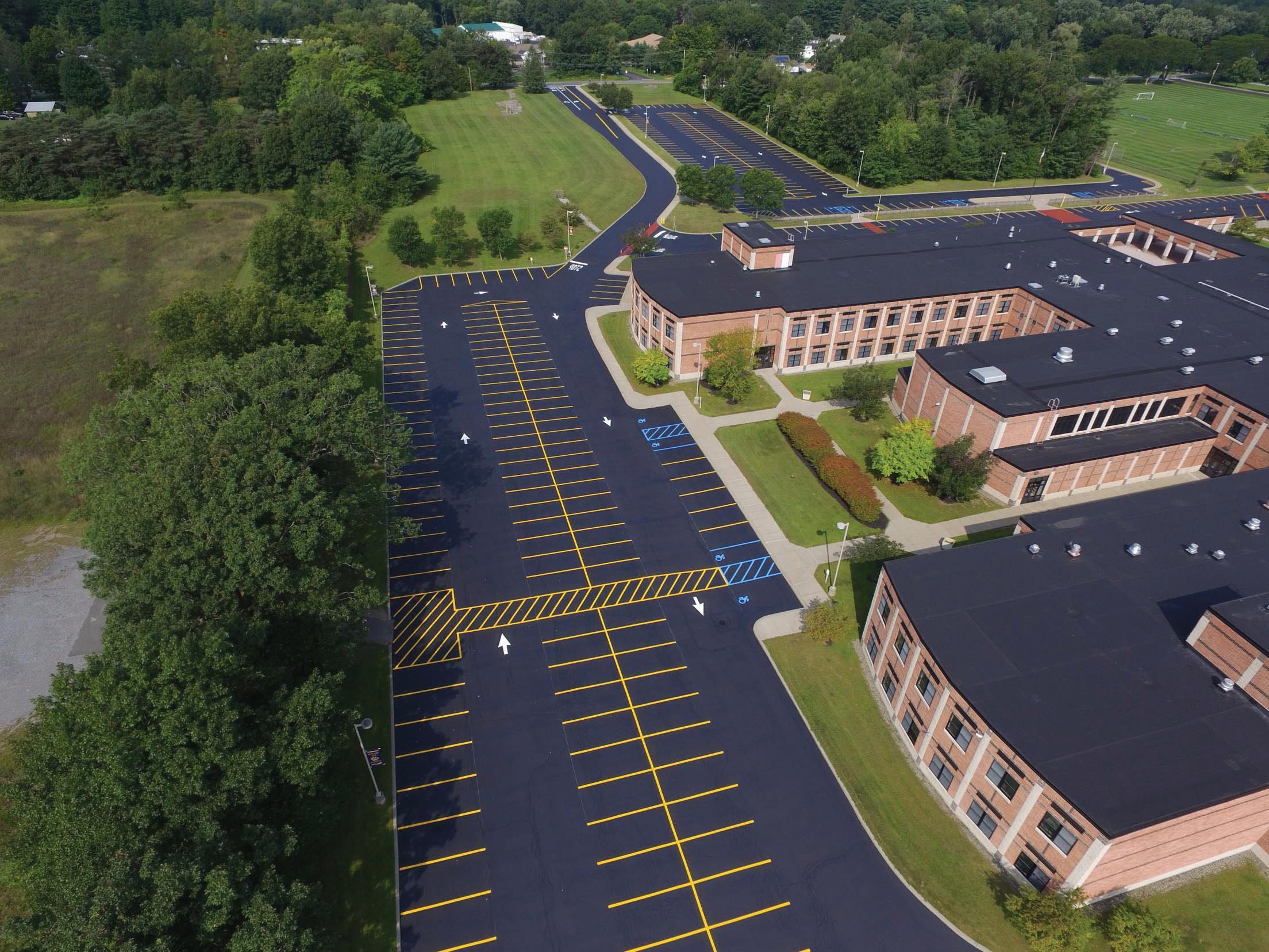 The team committed to restoring the entire campus layout. Approximately eighty parking spaces. More than twenty directional arrows. Specialty markings and more.