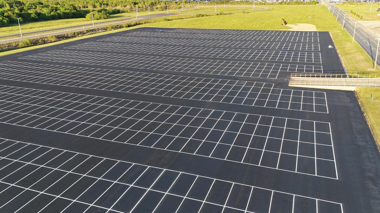 Because the solar canopies were not completed until late 2024, paving operations began in spring 2025.