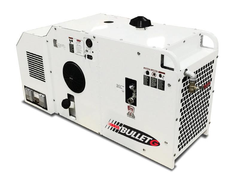 Jenny’s W11HGB-30P two-stage wheeledportable air compressor is equipped with an 11-hp Honda GX-Series engine with electric start. It includes a 30-gallon, ASME-certified air tank with a durable powder coat. It produces 21 CFM at 100 psi or 17.6 CFM at 175 psi. Built for tough operating conditions, the compressor includes several features to reduce maintenance and maximize uptime. Splash lubrication with the Jenny “Ultimate Blue” compressor-pump oil offers contractor-duty protection of the pistons, crankshaft, bearings, rings and cylinders.