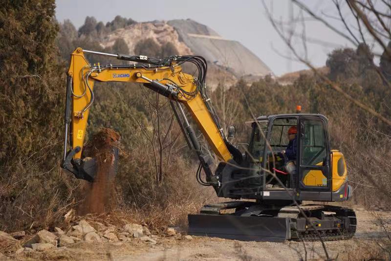 The XCMG XE80U excavator has an operating weight of 20,944 pounds and is powered by a 74.2 horsepower diesel engine.