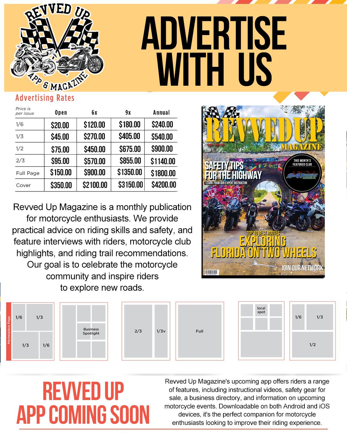 Revved Up Magazine & App will be available in May 2023, and readers can subscribe to the magazine or download the app from their preferred app store. Whether you are a die-hard motorcycle enthusiast or just getting started, Revved Up Magazine & App will be the ultimate resource for all your needs.