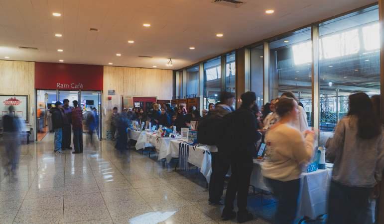 The spring 2026 club fair took place inside the Lowenstein Center Indoor Plaza and South Lounge.
