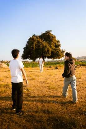 The operators — Bartosik’s own college-aged child and their friend — start the piece with a tender hug, and then pick up their lighting tools.