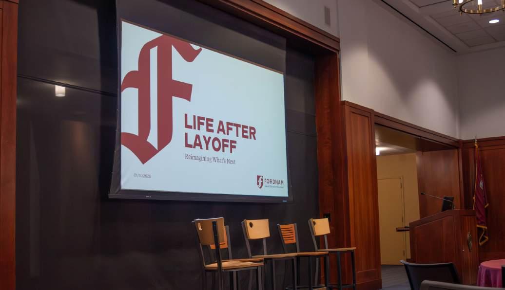 On Jan. 14, the Gabelli School of Business (GSB) hosted Fordham alumni for a discussion about the most difficult aspects of the job market in the 12th-floor lounge of the Lowenstein Center. “Life After Layoff: Reimagining What’s Next” brought working professionals spanning various occupational fields together to answer a question that unified them: How does one navigate job insecurity?