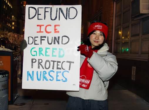 The day before the student walkout on Jan. 29, various labor unions, including those representing VA nurses like Pretti, organized a vigil in front of the Manhattan VA. Around 1,000 people showed up, many of whom were nurses wearing red hats and scarves marking them as part of the New York State Nurses Association. Many attendees bore signs with statements like “Defund ICE. Defund greed. Protect nurses,” “Care not Cages” and “ICE is Trump’s Gestapo.”