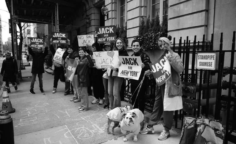 Laura Dunn, a candidate and attorney, passed out campaign fliers in front of Roosevelt House before the forum began. Around the same time, Schlossberg arrived at the venue, stopping to hug a small group of supporters carrying signs that read “Jack for New York” and “No PAC Jack.” According to organizers, candidates either had to have raised at least $250,000 as of the last filing or be an elected official to be invited.