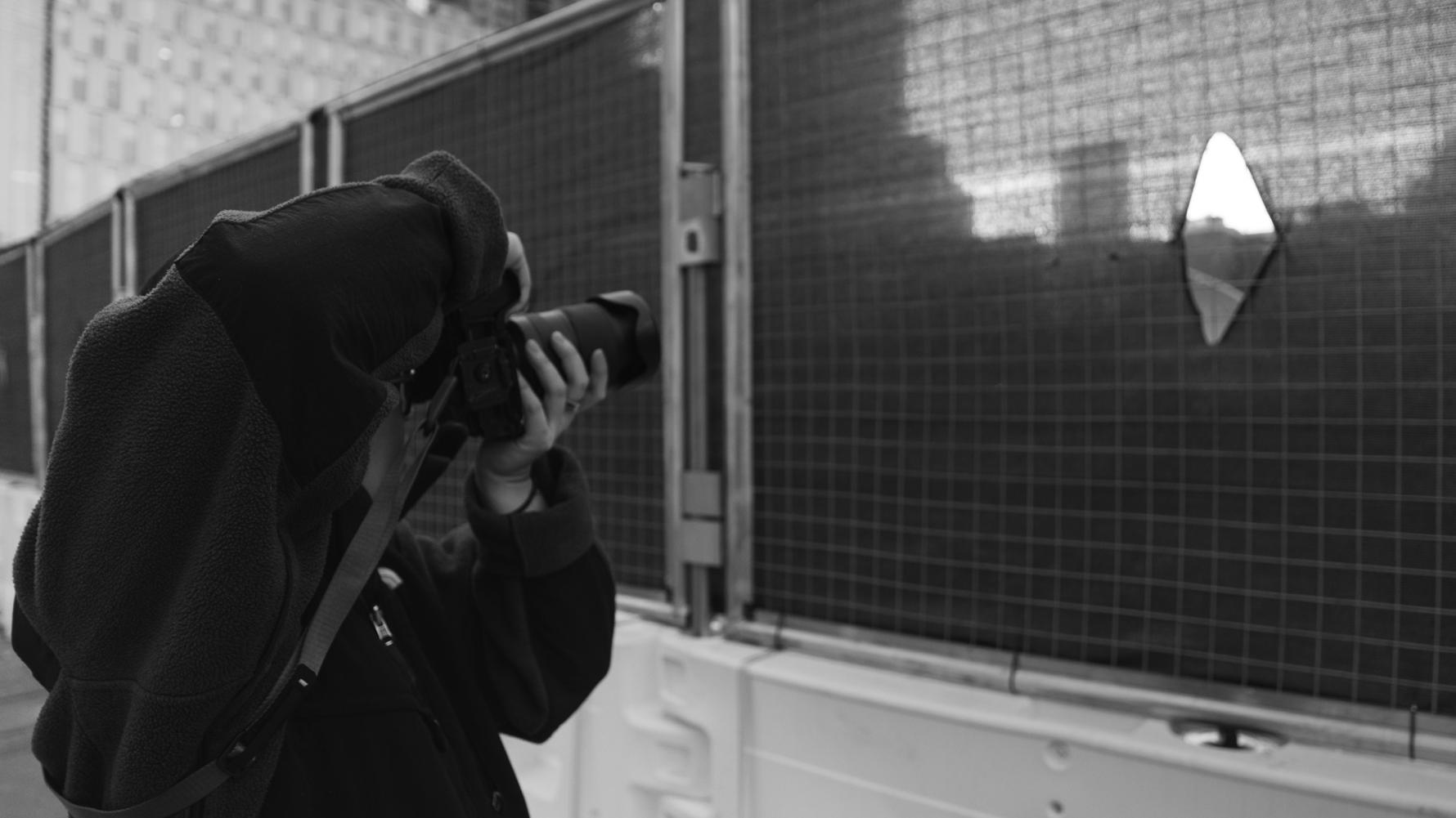 Viewers start at a big poster displaying a map of the walking tour, and then smaller ones zooming in on the three locations and their importance. Then, viewers embark on a walk themselves, as new black-and-white photographs taken by Guerra during the walk are clustered together with archival photographs in color that were preserved by Guerra’s mother.