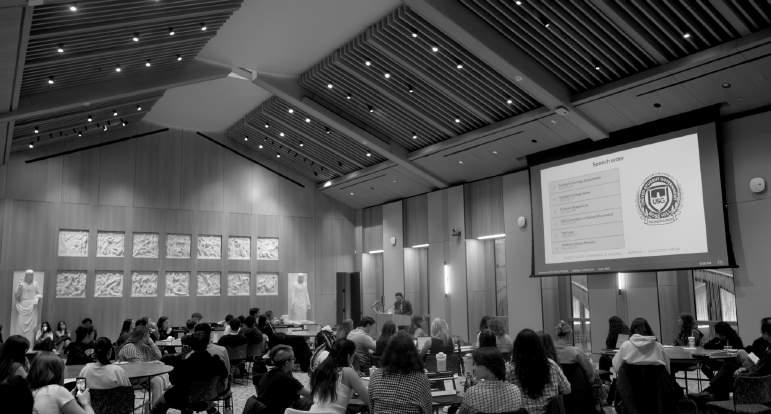 Domenick Fedele, USGRH’s first-year senator and FCRH ’29, spoke on behalf of USGRH and emphasized the importance of individual choice. Fedele said that the university should not create barriers to those choices, nor need it take a rigid stance of prohibition or endorsement.