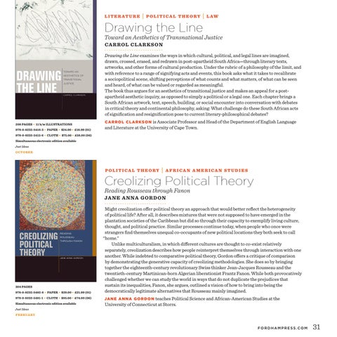 Drawing the Line examines the ways in which cultural, political, and legal lines are imagined, drawn, crossed, erased, and redrawn in post-apartheid South Africa—through literary texts, artworks, and other forms of cultural production. Under the rubric of a philosophy of the limit, and with reference to a range of signifying acts and events, this book asks what it takes to recalibrate a sociopolitical scene, shifting perceptions of what counts and what matters, of what can be seen and heard, of what can be valued or regarded as meaningful. The book thus argues for an aesthetics of transitional justice and makes an appeal for a postapartheid aesthetic inquiry, as opposed to simply a political or a legal one. Each chapter brings a South African artwork, text, speech, building, or social encounter into conversation with debates in critical theory and continental philosophy, asking: What challenge do these South African acts of signification and resignification pose to current literary-philosophical debates? 208 pages • 11 b/w illustrations 978-0-8232-5416-3 • Paper • $24.00 • £18.99 (01)