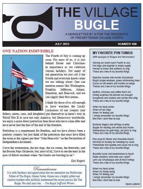Click here to read the July issue of The Bugle (PVN's newsletter created by residents for residents)